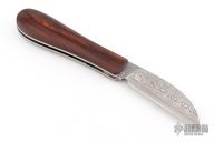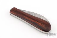 This Slipjoint by Stone Handmade features a Rose Damasteel sheepsfoot blade. The handle has cocobolo covers with white liners, stainless steel liners and spring. Has half-stop, flush in all positions. Comes with a leather slip sheath, zippered case and COA. Excellent condition.