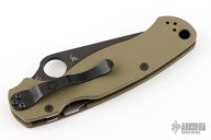 This Paramilitary 2 Folder from Spyderco has a black clip point blade with thumbhole and notched thumbrest. Handle is green G-10 with stainless steel liners and black 4-way reversible clip. Has a couple light scuffs otherwise Excellent condition. Comes with original box and papers.