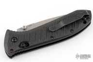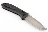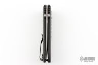 This 570 Presidio II by Benchmade features a bead blasted drop point blade with swedge and dual thumb studs. The handle is comprised of black molded carbon fiber over black steel liners and barrel spacers. Axis lock mechanism. Black coated tip up clip is reversible for left or right hand carry. Comes with original box, pouch, and papers. Has some light scuffs excellent condition otherwise.