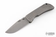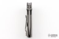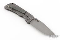 This MAC2 features a bead blast and tumble finish drop point blade with dual thumbstuds and a notched thumbrest.  The handle features a stonewashed titanium frame with a matching tip up pocket clip.  Includes box and papers. Comes with an extra clip. Excellent condition.