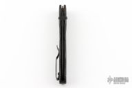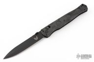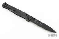This SOCP 4.5 by Benchmade features a black blade with false top edge and a thumbdisc. The handle has black FRN scales, black stainless steel liners and clip, 4-way reversible. Excellent condition. Comes with original box, drawstring pouch and papers. Also includes an extra clip.