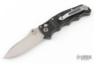 This 484 Nakamura AXIS features a drop point blade with swedge, dual thumb studs and notched thumb rest. The handle is comprised of machined black G10 scales over steel liners and barrel spacers. The steel tip up clip is reversible for right or left hand carry. Comes with original box, drawstring pouch and papers. Has some light scuffs and scratches, great condition otherwise.