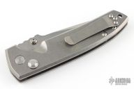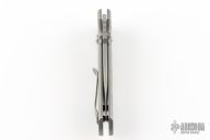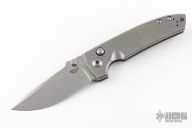 This Project VECP Buttonlock from Les George features a stonewashed CNC flat ground blade and a tumble finish titanium frame. Tip up titanium clip. Phosphorus bronze washers. Smooth action. Nice blade seating, detent and lockup. Comes with original zipper case. Excellent condition.