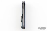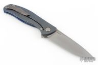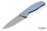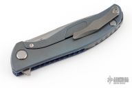 This Hati by Shirogorov Knives features a stonewashed vanax 37 blade with notched thumbrest and flipper. The handle has a blue twill carbon fiber and stonewashed and anodized titanium frame with matching tip up clip and backspacer with lanyard hole. Rides on bearings, nice detent, lockup and blade seating. Has some light scuffs, excellent condition otherwise. MRBS inside the frame.