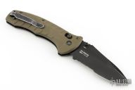 This model of the Benchmade Turret sports a black partially serrated blade made from CPM-S30V, and OD green G-10 handle scales.