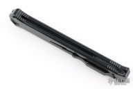 Joining the Estiletto OTF lineup is this fantastic model with a USA cutout on the black anodized aluminum body with black hardware/clip and a black coated clip point blade with plain cutting edges.