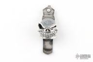 Dress up your Strider knife with this tripple collaboration pocket clip from Steel Flame and Starlingear! Flame patinad pocket clip with a silver Slickster sitting on top featuring a patina'd finish with polished highlights and measuring about .990 inches tall by .865 inches wide. New condition.