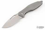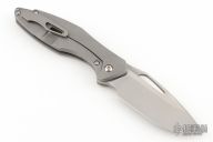 This Mini Arius by Koenig knives features a Brightwashed w/ PF finished blade with thumbhole. The handle has a smooth bead blasted titanium frame with a titanium tip up clip, titanium backspacer. Has ceramic bearings and a ceramic detent ball. Nice detent, lockup and blade seating. Comes with original box and COA November 11, 2024. New condition.