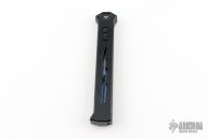 Joining the Estiletto OTF lineup is this fantastic model with a USA cutout on the black anodized aluminum body with black hardware/clip and a blue coated dagger blade.