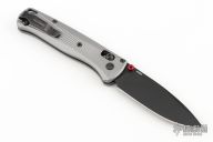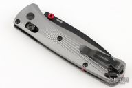 The Bugout features a drop point blade with a flat dark Cerakote finish. It's a manual opener with ambidextrous thumb studs. This AXIS lock has a milled aluminum frame and black hardware, a black mini deep-carry pocket clip, and a lanyard hole. Includes original box and papers. Excellent Condition.