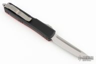 This OTF Ultratech T/E RSK 123-10, by Microtech features a tanto style blade made from Elmax steel. The handle is composed of Red and Black anodized aluminum. The pocket clip is tip down carry and is complimented with a glass breaker. Excellent condition. Comes with original box and papers. Dated 09/2024