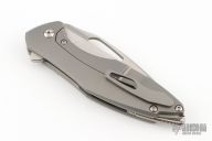 This Arius by Koenig knives features a Burnished finished blade with polished flats thumbhole and flipper. The handle has a bead blasted smooth titanium frame with a titanium tip up clip, titanium backspacer. Has ceramic bearings and a ceramic detent ball. Nice detent, lockup and blade seating. Comes with original box and COA June 26, 2023, Gen4. Has a few light scuffs, otherwise excellent condition.