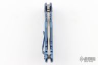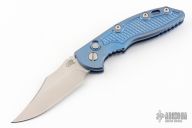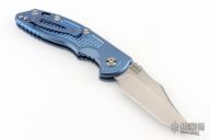 This XM-18 Flipper by Rick Hinderer Knives features a 3.5" stonewashed finish blade, notched thumbrest and flipper.  The handle has a blue stonewashed titanium frame with a matching tip up pocket clip.  Comes with original box and papers. Excellent condition.