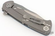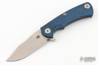 This Project X Flipper by Rick Hinderer Knives features a stonewash finished blade, notched thumbrest and flipper, dual thumbstuds. The handle has a black/blue G-10 scale, and working finished titanium frame with matching clip. Nice lockup, seating, and detent. Comes with original box and extra hardware. Excellent Condition.