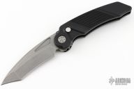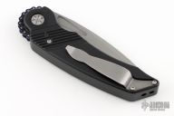 This MRX by Rat Worx features a stonewashed tanto recurve blade. The handle is black aluminum with a chain drive opening mechanism. Tip up stonewashed stainless steel clip. Excellent condition. Comes with original box.