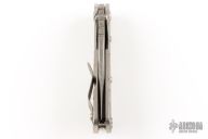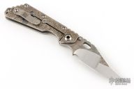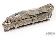 This Custom SMF, by Mick Strider, features Nightmare Ground Blade with textured flats. The handle has a full textured and laser engraved titanium frame with matching tip up clip. Nice detent, lockup and blade seating. Comes with zippered case. Excellent Condition.