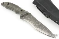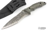 This XL Cyclone by Kiku Matsuda features a recurve blade with false top edge with notched thumbrest, .263" blade thickness and 1.922" blade depth, full tang construction. The handle has black canvas micarta scales. Comes with kydex sheath with belt clip and a zippered case. New condition.
