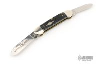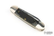 This Canoe 2-Blade Folder by Case Knives has polished stainless steel blades with nail nick(s). The handle has nickel silver bolsters and cap, jigged bone covers, brass liners and stainless springs. Excellent condition.