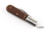 This Barlow by Imperial features two satin finished blades with nail nicks. The handle has steel bolsters, sawcut scales, steel liners and springs. Has some scratches, oxidation and pitting. Otherwise good condition for its age.