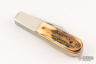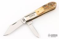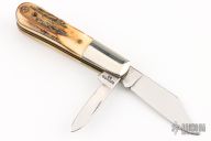 This two blade Barlow by Case features two mirror polished blades both with nail nicks. The handle has stag covers, nickel silver bolsters, brass liners and stainless steel springs. Has half-stops. Excellent condition.