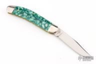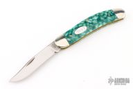 This Sowbelly by Case Knives features a high satin finished blade with nail nick. The handle has nickel silver bolsters, Green Kirinite covers, stainless steel springs with brass liners. Includes original box and papers. Excellent condition.