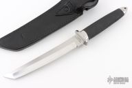 This Magnum Tanto by Cold Steel features a trailing point tanto style San Mai blade with .187" blade stock and 1.110" blade depth. The handle is comprised of a steel guard and pommel with a textured rubber grip over hidden tang construction. Includes original black leather sheath with belt loop. Excellent condition.