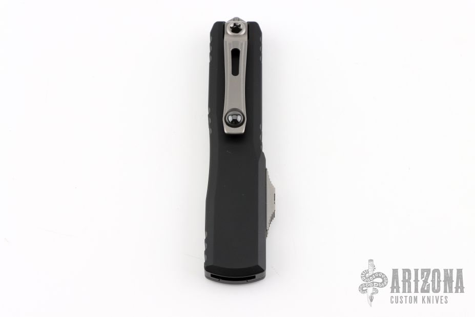 The new Ultratech further distinguishes itself from its predecessor with improved gimping, a slightly wider handle, a slightly longer and wider blade, a lower-profile glass breaker that's integrated into the handle, a wider thumb slide, a titanium pocket clip with a silica carbide ball, and Torx hardware. As with Microtech's other Gen III OTFs, a lanyard hole runs through the large base screw that secures the pocket clip, and the pocket clip is reversible for left-handed users. The knife's blade and handle thickness match that of the former iteration.