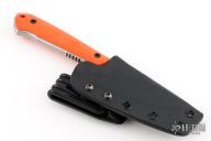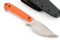 This Prima Midtech by Dervish knives features a tumble finished blade, .250" blade stock and 1.427" blade depth, full tang construction. The handle has milled orange G-10 scales. Includes a kydex sheath and clip. Excellent condition.