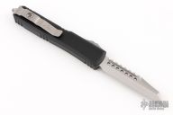 This Ultratech by Microtech Knives features a stonewashed Warhound blade with satin flats and false top edge. The handle has a black aluminum frame with tip down blasted stainless steel clip and hardware. Comes with original box and papers. 10/2022, S/N 577. Excellent condition.