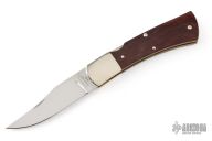 This Midlock folder by Harvey Otis McBurnette features a mirror polished clip point blade with nail nick. The handle has polished nickel silver dovetailed bolsters, wood covers, brass liners, stainless steel backspacer. Excellent fit and finish. Excellent condition.