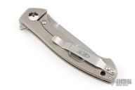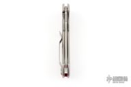 This 0450 Sinkevich designed folder from Zero Tolerance features a drop point blade with swedge and flipper. The handle is comprised of a tumbled titanium frame over red anodized aluminum stand offs, and titanium pocket clip. Has a couple light scuffs, excellent condition otherwise.