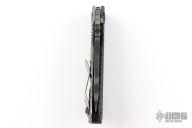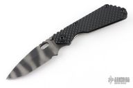 This SNG DGG by M Strider has a tiger striped tanto blade with dual thumb studs, thumbhole, and notched thumbrest. Handle is black G-10 and bead blasted titanium "Gunner Grip", lockbar stabilizer, and titanium tip up clip. Nice detent, lockup and blade seating. New condition.