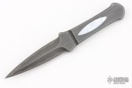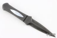 This Integral Dagger by MZ Knives features a Futuron Forge Elmax core San Mai Damascus double edged blade with .269" blade stock and .795" blade depth, integral construction. The handle is fluted and has mother of pearl inlays. Comes with a wooden box and COA dated 9/2024. New from maker.