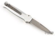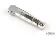 The Bodyguard side opening auto by Piranha Knives features a stone wash finished bayonet blade, ribbed aircraft aluminum handle, and titanium pocket clip. Has a couple light scuffs, otherwise great condition.