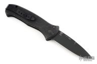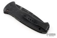 This Auto S.E.R.E. side opening auto from Al Mar Knives features a black spear point blade with swedge. The handle is T6 black anodized aluminum. The action is strong and lock-up is solid. Pocket clip for tip-up carry. Has scuffs and scratches throughout, fair condition/good user condition. S/N 08185