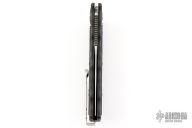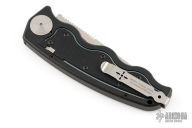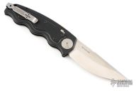This SOG-TAC Auto has a satin finish upswept blade with notched thumb rest. Handle is black anodized aluminum with safety, lanyard hole, and stainless steel tip up clip - RH/ LH reversible. Has a couple light scuffs and scratches, otherwise excellent condition.
