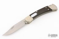 "This old classic BUCK knife 110 "Folding Hunter" was first introduced in 1965 - it has been BUCKS mainstay ever since. Some say the Buck 110 is the most copied knife in the world. This Buck automatic knife has a wood scales with nickel silver bolsters with integral liners. A must for any BUCK collection." Has some light scratches and patina great condition otherwise.