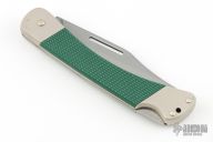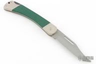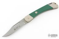 This 470 Puma Master by Puma Knives, features a bead blast finish clip point blade with nail nick. The handle has nickel plated frame with green insets. Has some scuffs and scratches, great condition otherwise.