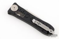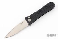 This Spec Elite I Auto by SOG features a satin finished recurve blade with notched thumbrest. The handle has a black aluminum frame with notched thumbrest. Has safety and tip up SS clip. Comes with original box. Has some light scuffs, excellent condition otherwise.