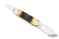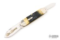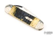 This Elephant Toe slipjoint by Case Knives has two mirror polished blades with nail nicks. The handle has nickel silver bolsters, caramel jigged bone covers, brass liners and pins, stainless steel spring. Excellent condition. Comes with original box and papers. Excellent condition.