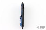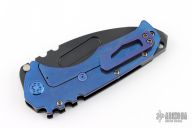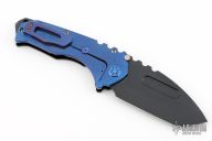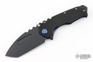 The Praetorian G by Medford Knife and tool, features a tumbled and anodized finished titanium and black G-10 frame. Has a black DLC tanto blade with notched thumbrest and fullers. The knife has a titanium clip, tip up carry. Comes with original box, zippered case and papers. Nice detent, lockup and blade seating. Excellent condition.