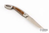 ‘Scarperiese’ is the to-scale reproduction of “Lo Scarperia”, the knife made in a limited edition of 10 pieces to celebrate the 700th anniversary of the foundation of Scarperia, and 10th anniversary of the Saladini business. This knife is the most characteristic of our pieces, as it communicates the entire history of our ancient craft through its design. The handle repurposes the shank of a scissor, made of two metal plates which can either be in stainless steel or titanium, appreciated for its lightness and strength. The inserts can be made from the various natural materials that we work with.