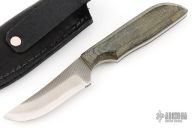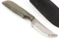 This knife by Anza Knives features a blade made from a file, micarta scales with .148" blade thickness and .816" blade depth, full tang construction. Comes with a black leather sheath. Has some light scuffs, excellent condition otherwise.