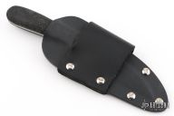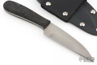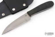 This knife by Jeff Morgan features a hand rub satin finished blade, .153" blade stock and 1.236" blade depth, full tang construction. The handle has rubber scales. Comes with black Kydex sheath with leather loop. Excellent condition.