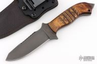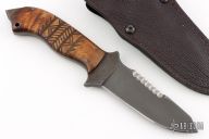 The S.A.R. is based on the WK Utility Knife, but adapted to the needs of a Search and Rescue Team from Santa Barbara, CA. Their operations can be on land or in water. The WK S.A.R. is made of 80CrV2 and features a glass breaker, serrations for cutting rope/cord and a high performance cutting edge. Knife Specifications Blade steel: 80CrV2 Black oxide no-glare finish Blade length: 4 3/4" Overall length: 9 1/2" Blade thickness: 3/16" Skeletonzied full tang Sheath Lined Kydex® Designed for multiple carry options (See our accessories page for carry options) Comes with original sheath. Has some light scuffs, excellent condition otherwise.