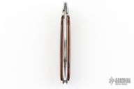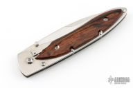 This Evolution framelock folder by William Henry features a satin finished blade with dual thumbstuds. Satin stainless steel frame with bocote wood scales. Comes with original box. leather sheath and papers. Excellent condition.