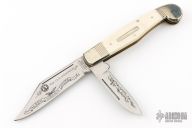 This large slipjoint with "The Old Dominion" engraved on the blade. Nickel silver bolsters, bone scales, brass liners, stainless steel springs. Has some light scratches on the blade and bolsters, otherwise Excllent Condition.