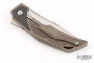 This Justice flipper by Custom Knife Factory is a Tashi Bharucha design. It features a satin finished, M390 blade with swedge and flipper. The handle is comprised of milled and tumbled titanium with a matching tip up clip and zirconium inlays. Stainless lockface insert. Nice detent, lockup and blade seating. Includes padded and zippered case, extra hardware and COA. Numbered #141. Has some light scuffs and scratches, otherwise good condition.