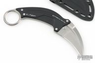 K-Talon is a fixed-blade karambit with a full-tang structure. It has a particularly thin shape with a thickness of only 10 mm including sheath and scales. The curved and hooked blade was inspired by the shape of a talon. It is designed to make clear and deep cuts as well as to hook, seize and/or tear.