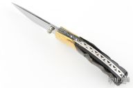 John Thita knives are made by a team of 4 longtime knife makers from Uthai Thaini province of Thailand supervised by Suchat Jangtanong who is one of the world's premier knifemakers. John Thita is a talented knifemaker from Thailand, known for his high-quality custom knives. He is part of a five-person knife making team called Thita, which means "strong and stable" in Thai. The team is based in the Uthai Thani province, about 200 kilometers from Bangkok. John Thita specializes in creating knives from Damascus steel with presentation-grade handle materials. Many of his knives feature a unique assisted opening mechanism and meticulously-carved scrimshaw designs. His work is highly regarded and is sold through various custom knife dealers